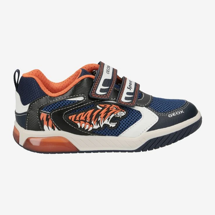 - Exchangeable footbed, suitable for insoles, insole made of chrome-free tanned leather (breathable, shock-absorbing, antibacterial) / individually adjustable, Velcro fasteners, logo embossing, entry loop, padded upper, contrast stitching, 3d application “Tiger”, flashing function in the sole, breathable