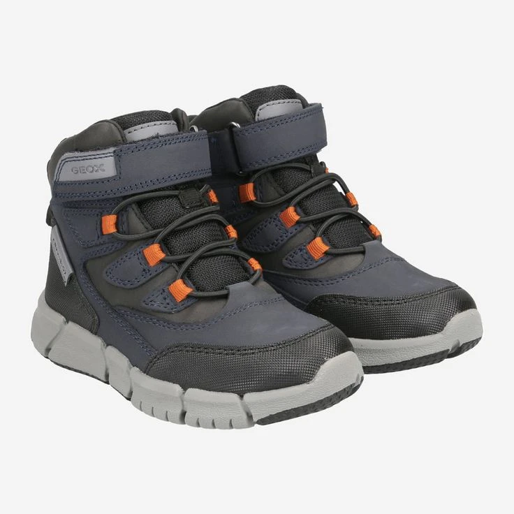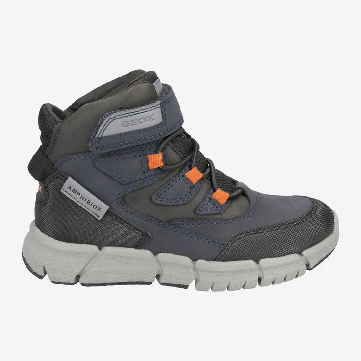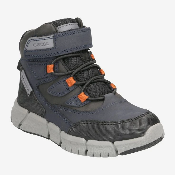 With these blue boots “Flexyper” from Geox your child is ready for new adventures! The model is very easy to clean, durable and long-lasting due to the synthetic material. Orange accents make the shoe easily visible even at dusk, and give the shoe a dynamic look. Geox replaceable insole allows you to insert custom insoles for your child.