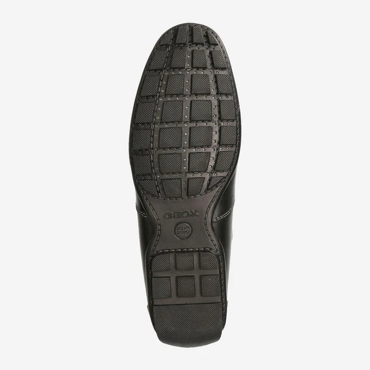 Black men’s loafers from Geox. The upper is made of smooth leather, the lining is lined with leather. The loafers have a leather insole and a rubber sole. Stretch inserts facilitate entry and decorative stitching and a discreet logo embossing are also incorporated.