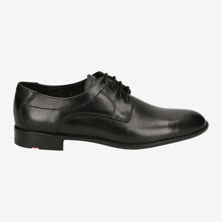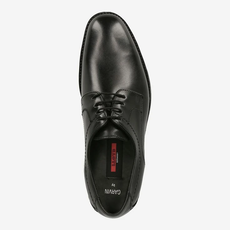 Black men’s lace-up shoes from Lloyd. The upper is made of smooth leather (Saragozza Calf) and has decorative stitching. Inside the shoes are lined with textile and leather and equipped with a leather insole. The outsole is made of rubber. Last shape: Record.