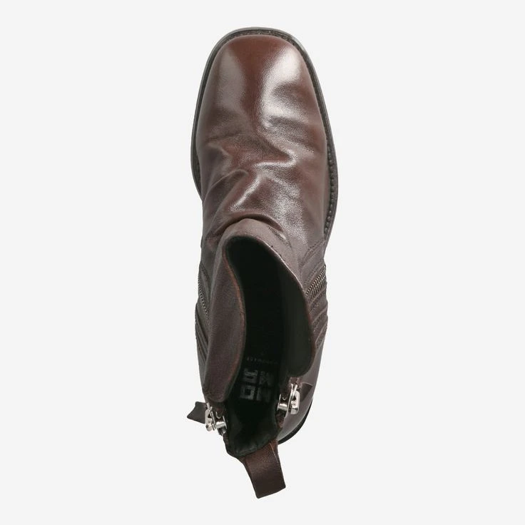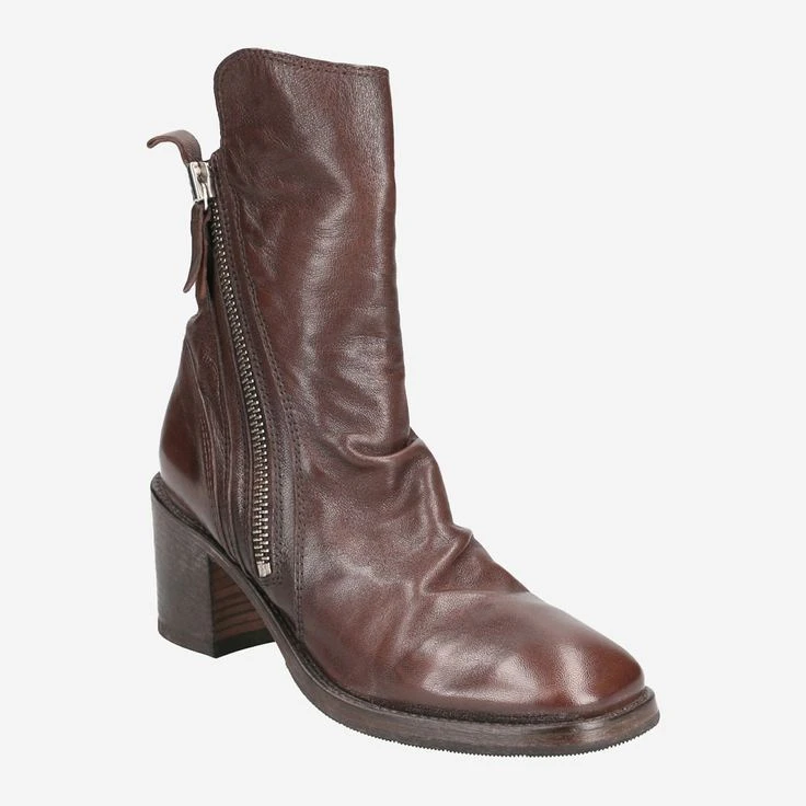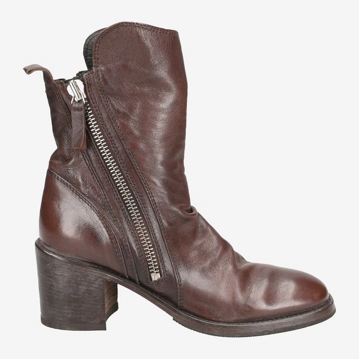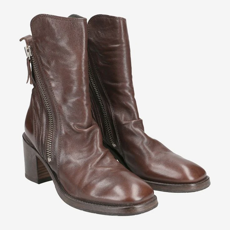 Enjoy authenticity, individuality and the charm of the vintage look! These rocking biker boots from MOMA Frago are made of brown smooth leather, which receives its unique, individual character through elaborate handwork. A diagonally running zipper emphasizes the rock look, and serves your convenient entry.