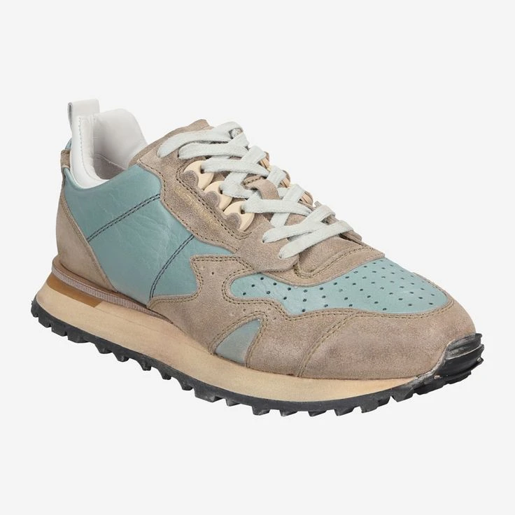 In traditional craftsmanship, this high-quality casual shoe from MOMA is made! The combination of blue smooth leather and beige suede gives the model a stylish retro look. The used effects give this sneaker additional, authentic charm!
