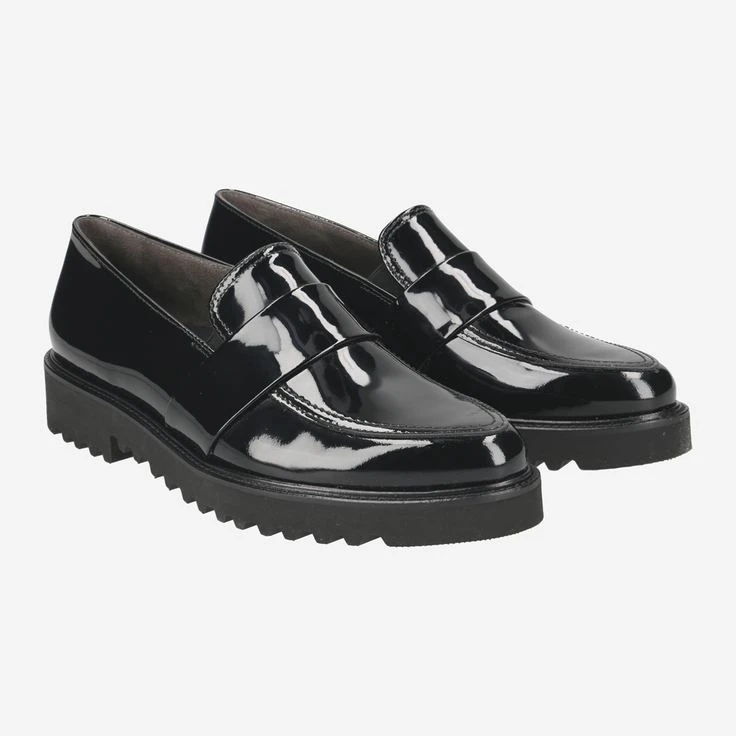 These SUPER SOFT loafers from Paul Green present themselves simply and stylishly. The classic, elegant design of black soft patent leather gives a magical fashion image. Pleasantly flat and particularly light and comfortable to slip on, these moccasins have what it takes to become a favorite piece and can also be combined in a variety of ways. Convince yourself! Paul Green shoes have a DNA of elegance and sportiness. This DNA is in every single shoe and in the entire range.