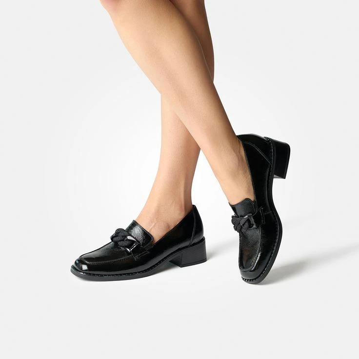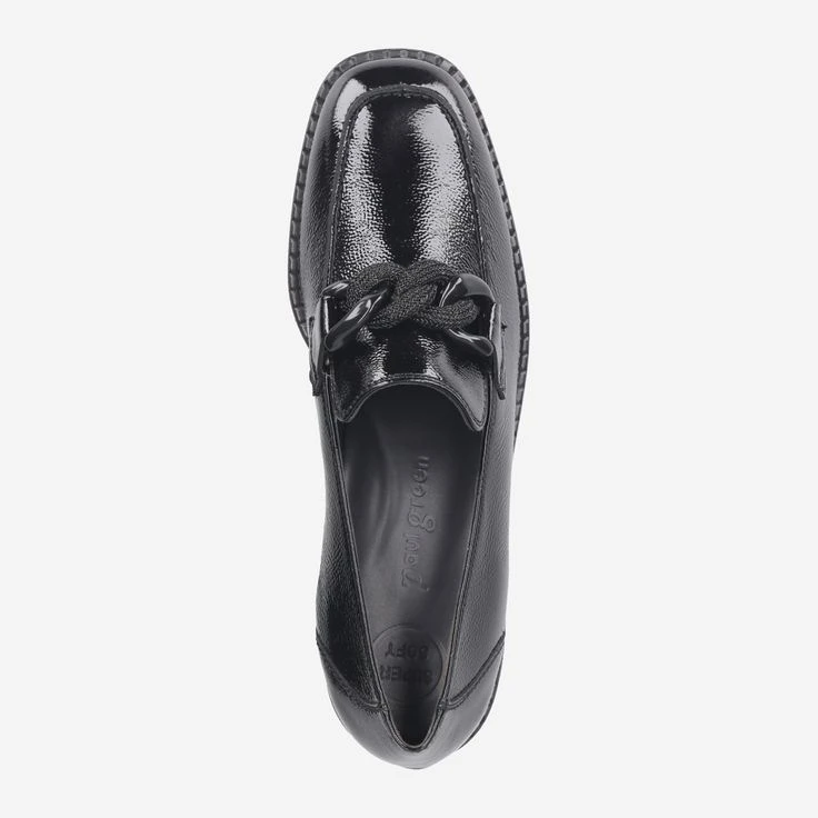 Comfortable classic – impressively staged! Soft crumpled patent leather in black pleasantly caresses the foot and gives this SUPER SOFT loafer from Paul Green an enchanting fashion image. The attractive chain at the instep area provides a fashionable update. With the small block heel, these accessories will quickly become “everybody`s darling” and should not be missing from any wardrobe. With this pair you will have a perfect look with many outfits! Paul Green makes shoes with great passion and mastery, which is expressed in perfection, quality, style and fit. The result: a unique, uplifting wearing experience! The Paul Green effect.