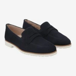 Show off a stylish touch with these SUPER SOFT slip-ons from Paul Green. The model convinces with soft velvet leather in blue and presents itself with a classic penny bridge and pointed toe cap. In addition, the model provides an exceedingly super soft heel and a soft comfortable outsole for unbeatable wearing comfort. A shoe for all days! Paul Green shoes have a DNA of elegance and sportiness. This DNA is in every single shoe and in the entire range.