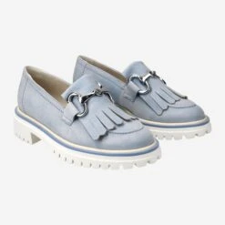 Fashionistas love these SUPER SOFT loafers from Paul Green because they are hip and go with everything. The light blue nubuck leather with fringe part and noble chain at the instep area creates a modern fashion style. Puristic noble in look, the loafer shows itself with flexible outsole and attractive frame. The ideal partner for any look! Paul Green makes shoes with great passion and mastery, which is expressed in perfection, quality, style and fit. The result: a unique, uplifting wearing experience! The Paul Green effect.