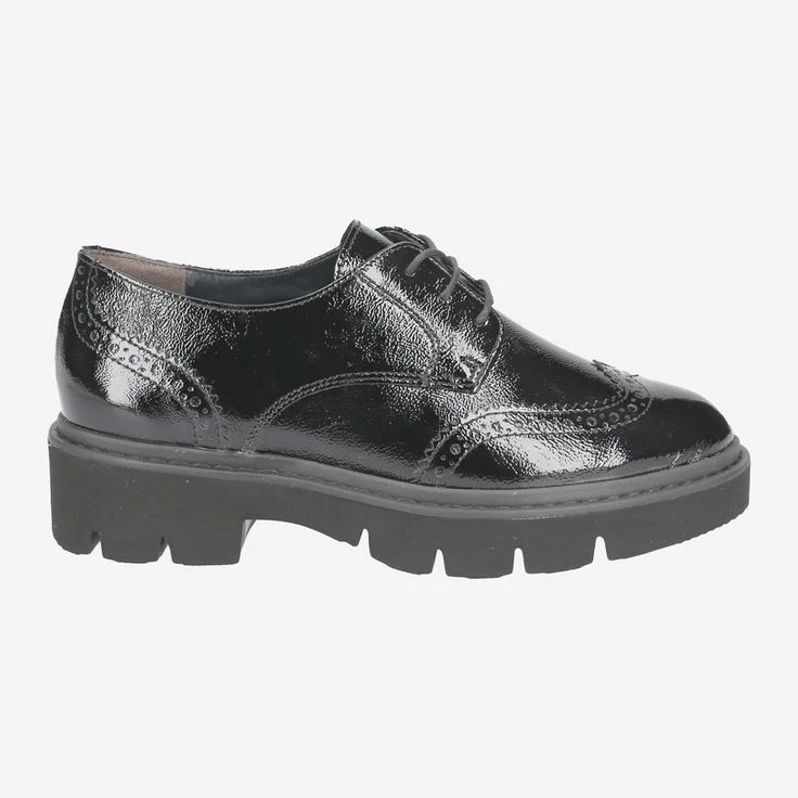 These fashionable lace-ups with RELAX-WEITE from Paul Green convince with comfortable wearing comfort. The noble pair made of black crumpled leather with delicate Lyra perforation ensures a stylish appearance. This model also features an integrated exchangeable footbed. Thus, wearers of orthopedic insoles can easily replace the removable footbed with their orthopedic insole. Furthermore, the additional Relax width creates more volume in the toe and ball area. All that remains is for us to wish you lots of fun wearing them!