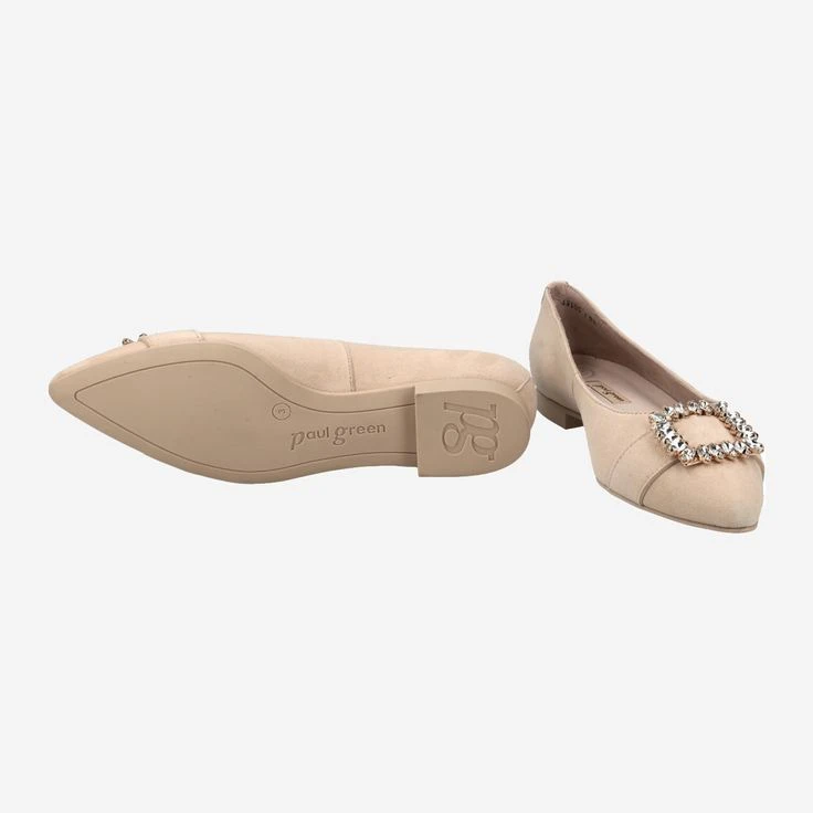 These SUPER SOFT ballerinas by Paul Green are cultivated styling partners with an elegant touch. Supple velvet leather in beige shows itself with a tapered line. An attractive buckle neatly sets the model in scene. Pleasantly flat with a flexible outsole, these ballerinas are a must-have for any wardrobe. A pair to fall in love with! Paul Green makes shoes with great passion and mastery, which is expressed in perfection, quality, style and fit. The result: a unique, uplifting wearing experience! The Paul Green effect.