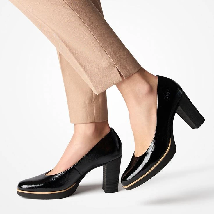 This black pump from Paul Green inspires with precise workmanship and an elegant, high heel in comfort width. SuperSoft technology provides ideal cushioning for your heel area, and the slight platform with contrasting last balances the heel to a comfortable height. Just the right choice for your business look!