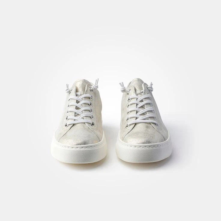 Sneakers are cult! And this beige model in trendy metallic look is the absolute must-have of the coming season! Paul Green complements the coated leather with an innovative lacing made of double rubber laces! This makes putting on and taking off a breeze. The SuperSoft technology, the fantastically comfortable Relaxweite, and the interchangeable leather footbed give you wonderful comfort! The inner lining made of fluffy terry cloth provides an airy light wearing feeling.