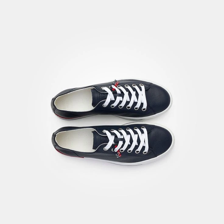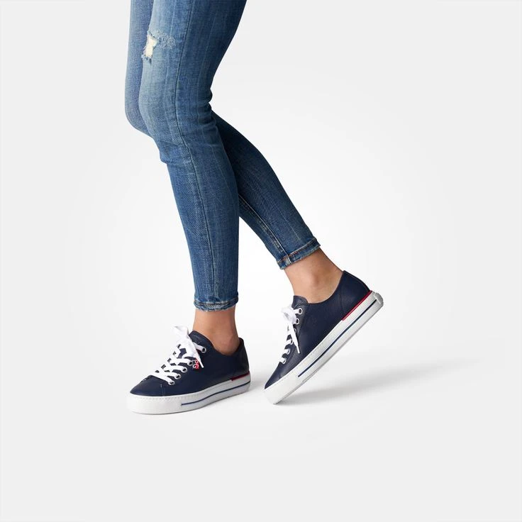 These first-class SUPER SOFT Pauls by Paul Green are an excellent piece for your shoe collection and the epitome of casualness. The model convinces with a clean look made of extremely soft, blue smooth leather. The attractive outsole in a trendy striped design also adds stylish accents. The red-blue rep ribbon on the lace gives the model an eye-catching accent. A super soft heel nestles comfortably against the foot, and the soft leather lining with TENCEL™ fibers ensures a pleasant feel. Run through your day in comfort and convenience. Definitely the perfect sneaker for your fashionable street styles!