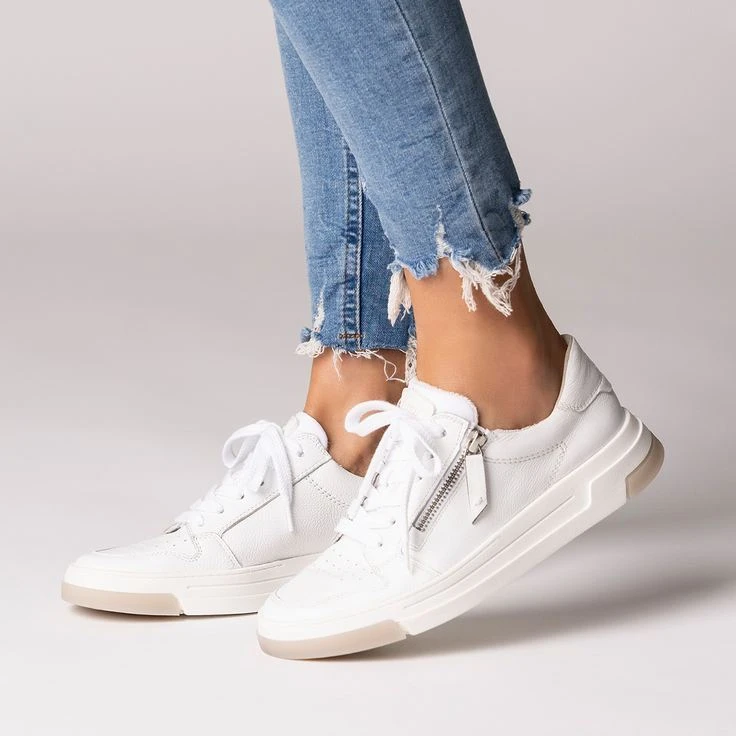 These SUPER SOFT Pauls from Paul Green score with a lot of comfort. Soft smooth leather in white nestles comfortably against the foot and lets the sporty style become real favorites. The hip model is stylishly complemented by a zipper on the side. Due to the inner lining with leather and terry cloth, you are guaranteed a cozy feeling. The flexible outsole optimizes the comfort. Convince yourself of this distinctive model! Paul Green makes shoes with great passion and mastery, which is expressed in perfection, quality, style and fit. The result: a unique, uplifting wearing experience! The Paul Green effect.