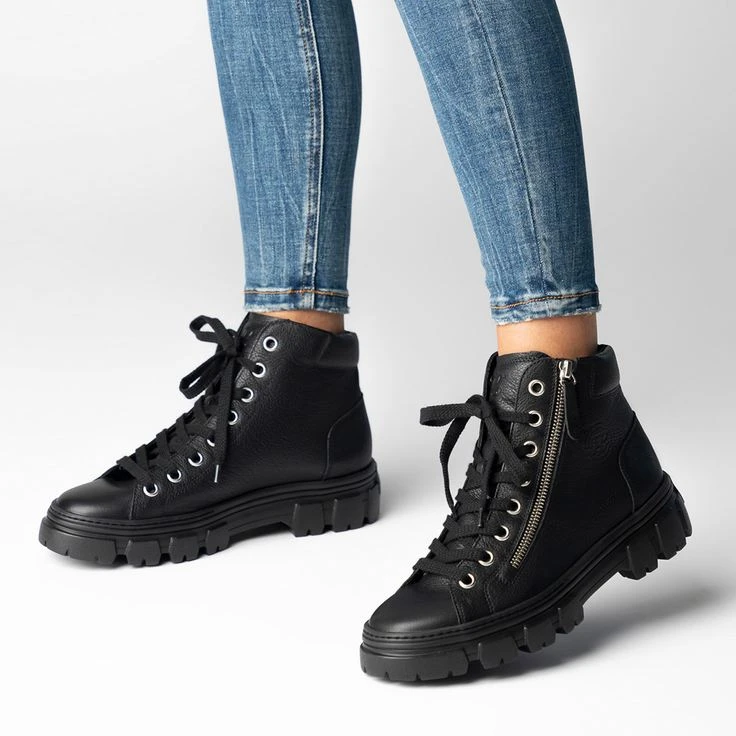 These SUPER SOFT hightop sneakers from Paul Green are unrestrictedly comfortable, making them perfect for casual wear. The cuddly pair made of soft smooth leather in black provides a great look with the side zipper. Thanks to the super soft finish and leather lining with TENCEL™ fibers, this model offers an excellent walking experience. The matching progressive outsole rounds off the style in a trendy way and convinces with a safe and relaxed appearance. Complete your outfit with this great pair!