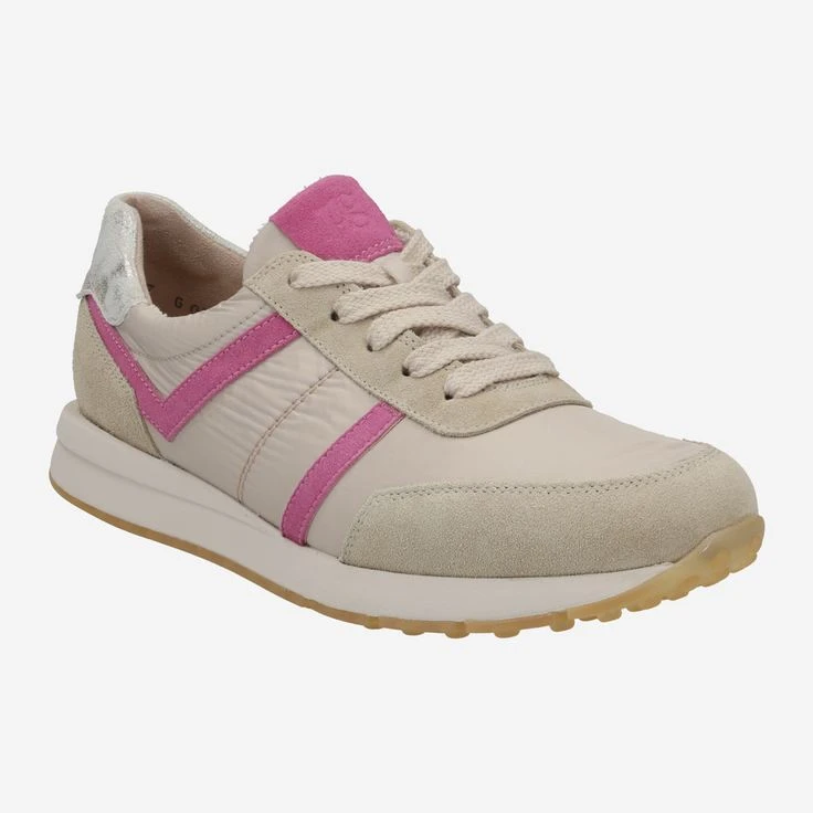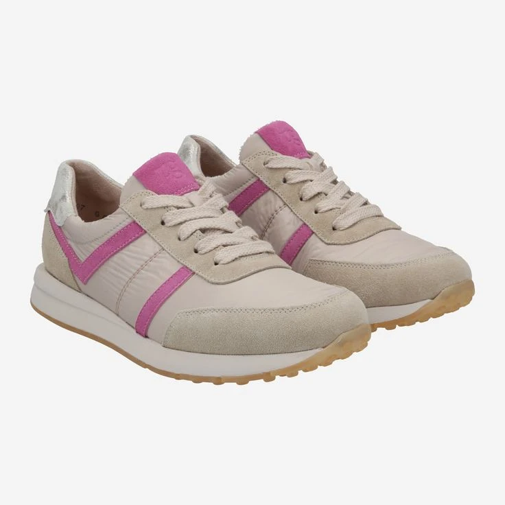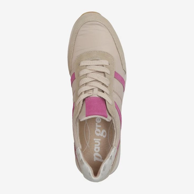 These SUPER SOFT sneakers with RELAX-WEITE from Paul Green are a must-have for leisure, city and as a complement also in business. The sporty lace-up shoes are wonderfully comfortable to wear and look so stylish thanks to their color combination of beige suede and textile fabric in combination with pink details. Thanks to the extra width in the toe and ball area, a comfortable feeling is guaranteed. The inner sole is removable. A flexible outsole adds the extra trendy accent. Convince yourself!