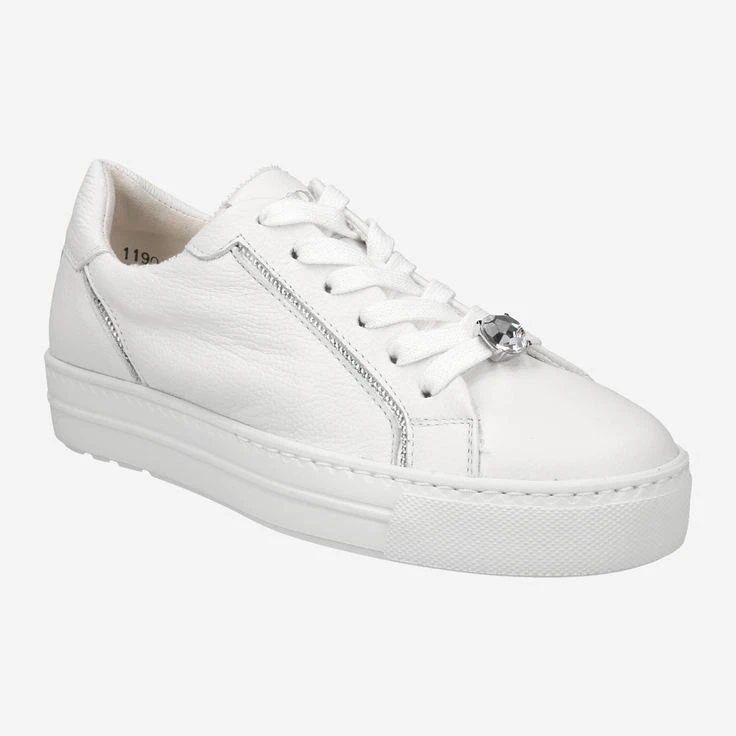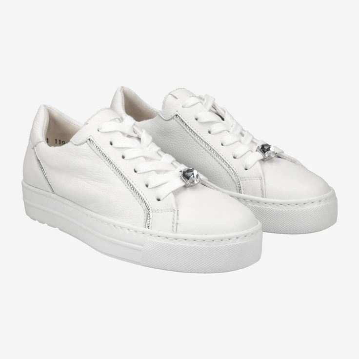 Add elegant accents to your looks with these SUPER SOFT Pauls from Paul Green. The charming model made of white smooth leather provides a feminine look with a sparkling gemstone at the lace and rhinestone band on the side. An uber-soft leather insole with TENCEL™ fibers optimizes a comfortable feel. The tonal outsole offers best comfort and completes the coherent look. An indispensable companion for leisure and city! Paul Green makes shoes with great passion and mastery, which is expressed in perfection, quality, style and fit. The result: a unique, uplifting wearing experience! The Paul Green effect.