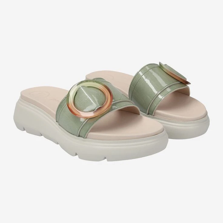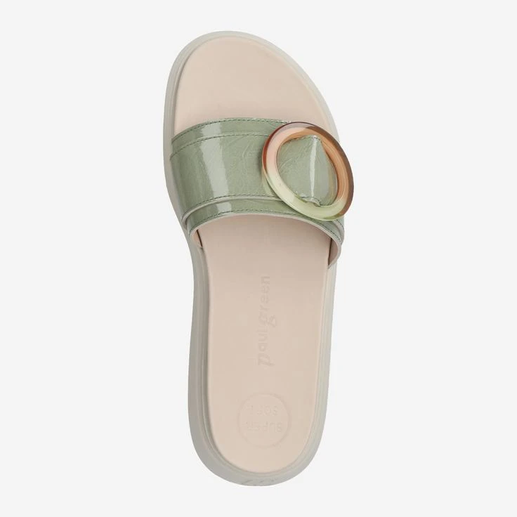 These SUPER SOFT mules by Paul Green are casual, carefree and extremely comfortable. The wide bandage made of noble patent leather in green nestles comfortably against the foot and presents itself through the noble buckle in an enchantingly feminine look. The soft footbed makes the pair simply fantastic to wear. The flexible platform outsole optimizes the special wearing comfort. Become true style icons with this model! Paul Green makes shoes with great passion and mastery, which is expressed in perfection, quality, style and fit. The result: a unique, uplifting wearing experience! The Paul Green effect.