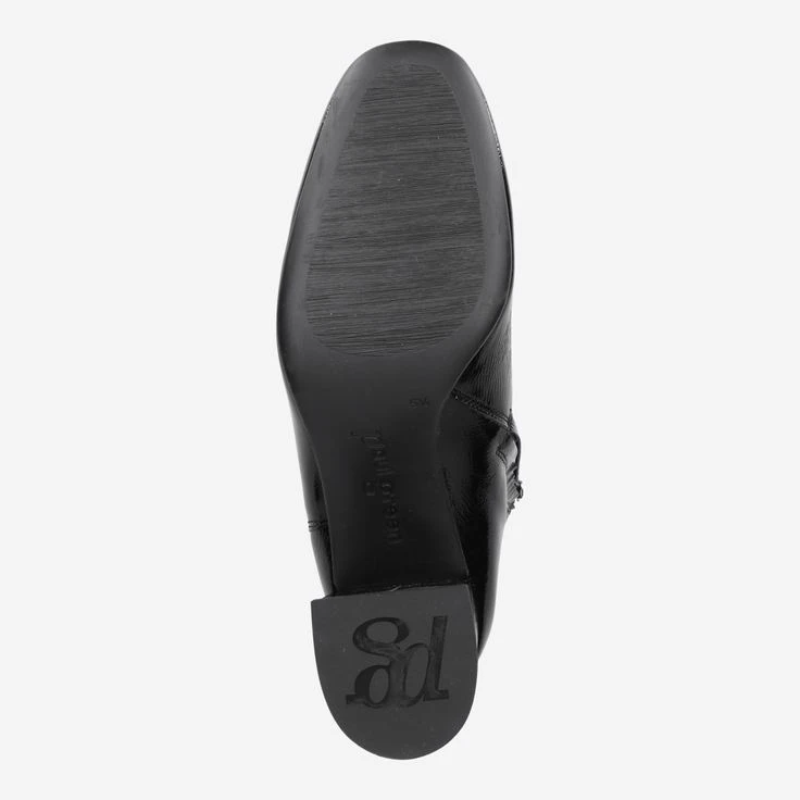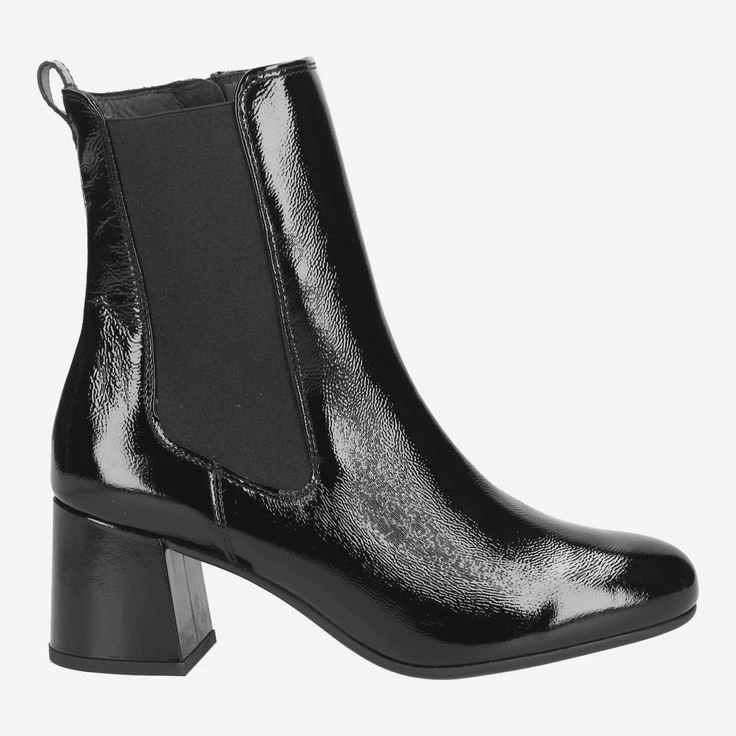 - Patent leather upper in crumpled patent look (flat, fine pleat structure guarantees optimum flexibility and prevents hard creases), zipper closure, block heel, entry loop, stretch insert, breathable