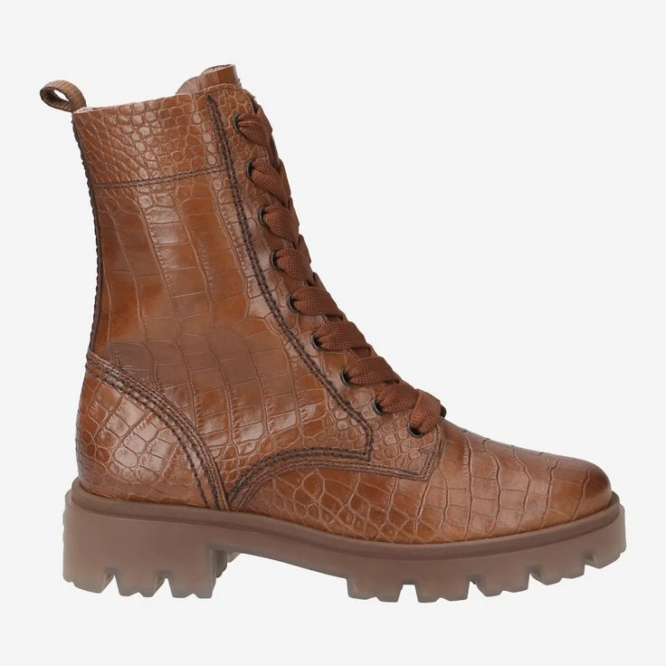 With these boots you give her autumn look an unmistakable sporty touch. The brown leather in reptile look enhances the shoe and thus their look and ensures trendy appearances. The sole in partially transparent optics makes the shoe unique and it creates a harmonious overall picture. Via the zipper the entry is very easy, so you can use the lacing only for your individual adjustment.