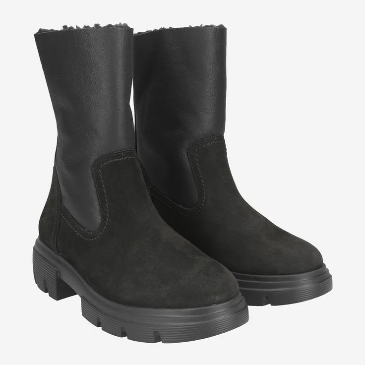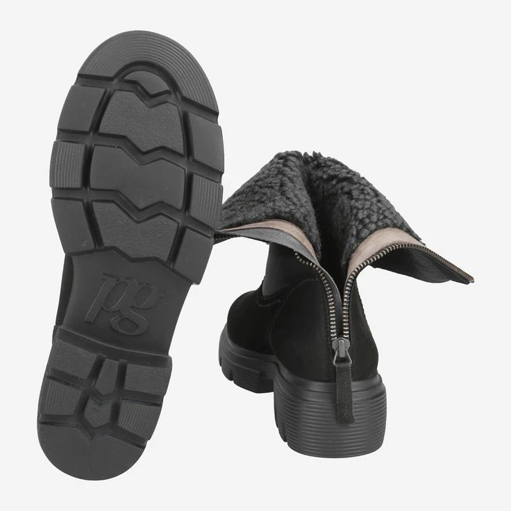 With these booties with warm lining from Paul Green you are well equipped for all winter weather conditions. The model made of black nubuck leather completes the design with the soft shaft made of doubleface and ensures a convenient entry and exit with the zipper at the back. Inside the shoe, the feet are equipped with cozy Merino warm lining (mulesing-free). The somewhat coarse outsole offers a first-class wearing pleasure. So must be the favorite ankle boot, which you can wear with pleasure and combine versatile!