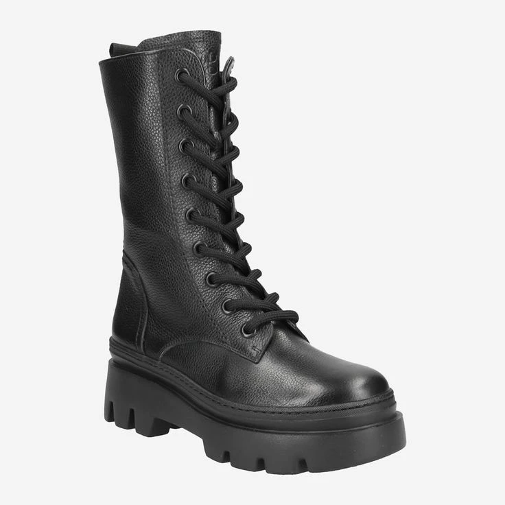 Whether with pants or dress: These high lace-up booties from Paul Green are always a good choice. The model convinces with a progressive look in casual black smooth leather and ensures a perfect wearing feeling with the inner lining made of leather with TENCEL™ fibers. The chunky sole perfectly matches the design and maximizes comfort. These cool lace-up ankle boots are the absolute shoe trend of the hour!