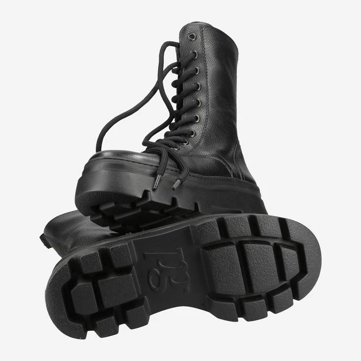 - Zipper closure, block heel, platform sole, entry loops, logo embossing, decorative stitching