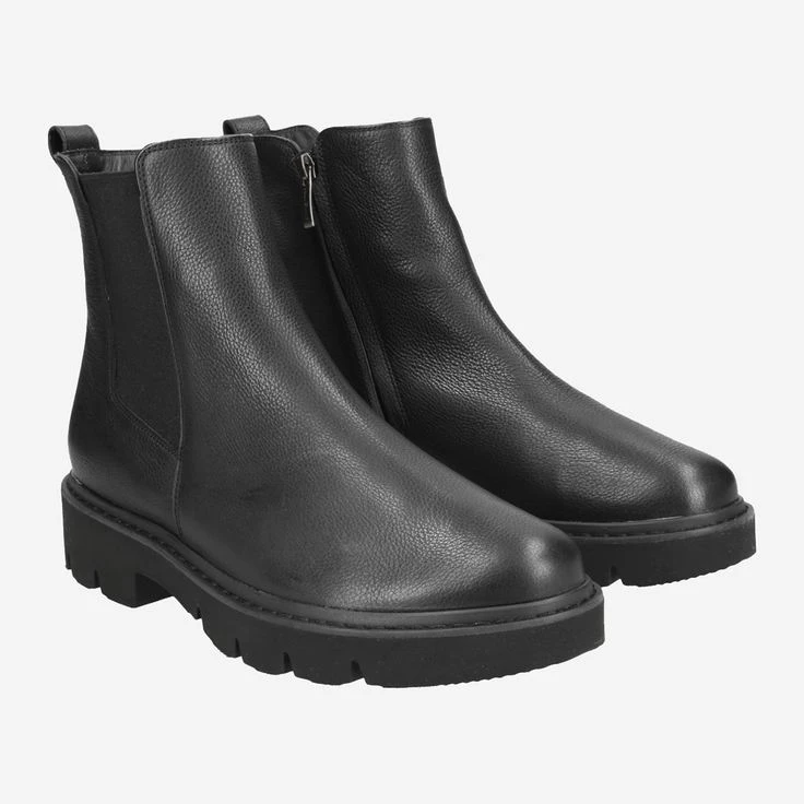 This classic Chelsea bootie with RELAX width from Paul Green convinces all along the line. The model is made of black smooth leather and is characterized by the lateral stretch inserts. In addition, the pair has a removable and lightly padded interchangeable footbed, which creates a wonderful walking feeling. Style this comfortable bootie with your favorite outfits! Paul Green makes shoes with great passion and mastery, which is expressed in perfection, quality, style and fit. The result: a unique, uplifting wearing experience! The Paul Green effect.