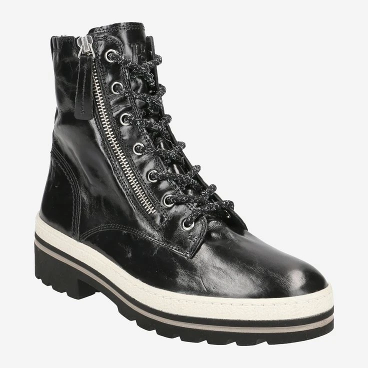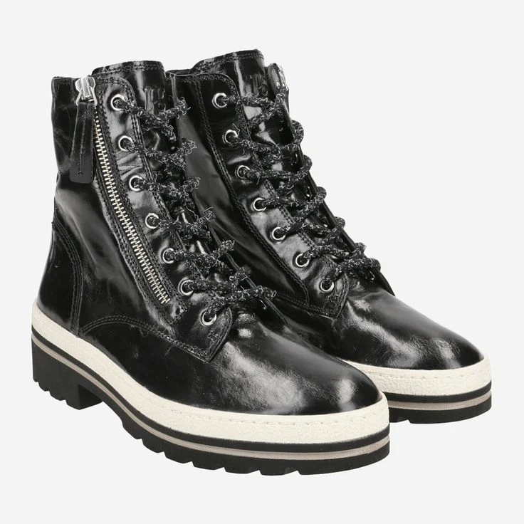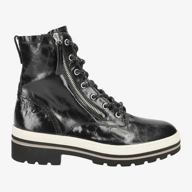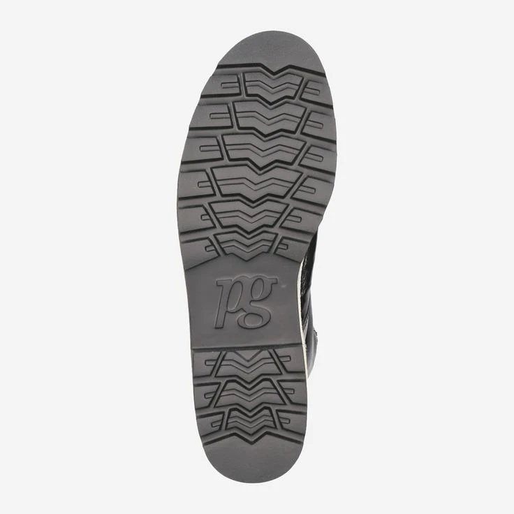 A real eye-catcher of the current collection of Paul Green is this casual winter boot! It combines a wide variety of style elements with each other, creating a young, dynamic look. The black, coated leather is often used in the business sector, the tread sole is classically known from boots, and the design skillfully picks up the high sneaker. The exciting look is complemented by a high-quality lining made of 100% wool (merino wool), which was obtained mulesing-free. The thermal insole provides optimal protection from the cold. A bright rubber strip protects against splashing wetness. Simply optimal!