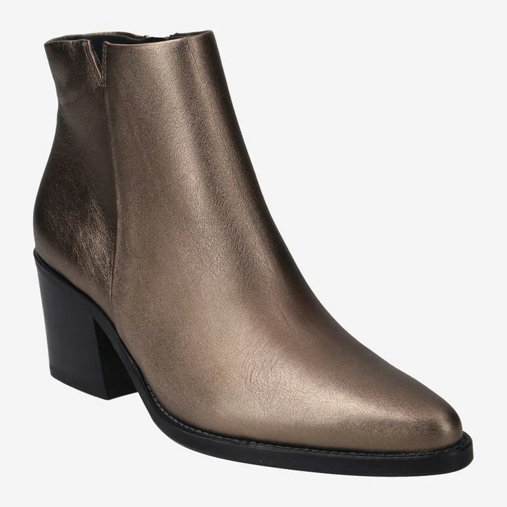 These high-quality ankle boots from Paul Green convince in trendy style. The soft metallic leather in bronze with pointed toe inspires with casual block heel and comfortable outsole. A zipper on the inside completes the design and comfort. Get this appealing duo! Paul Green makes shoes with great passion and mastery, expressed in perfection, quality, style and fit. The result: a unique, uplifting wearing experience! The Paul Green effect.”