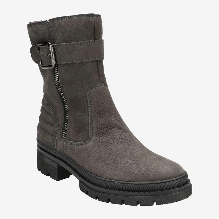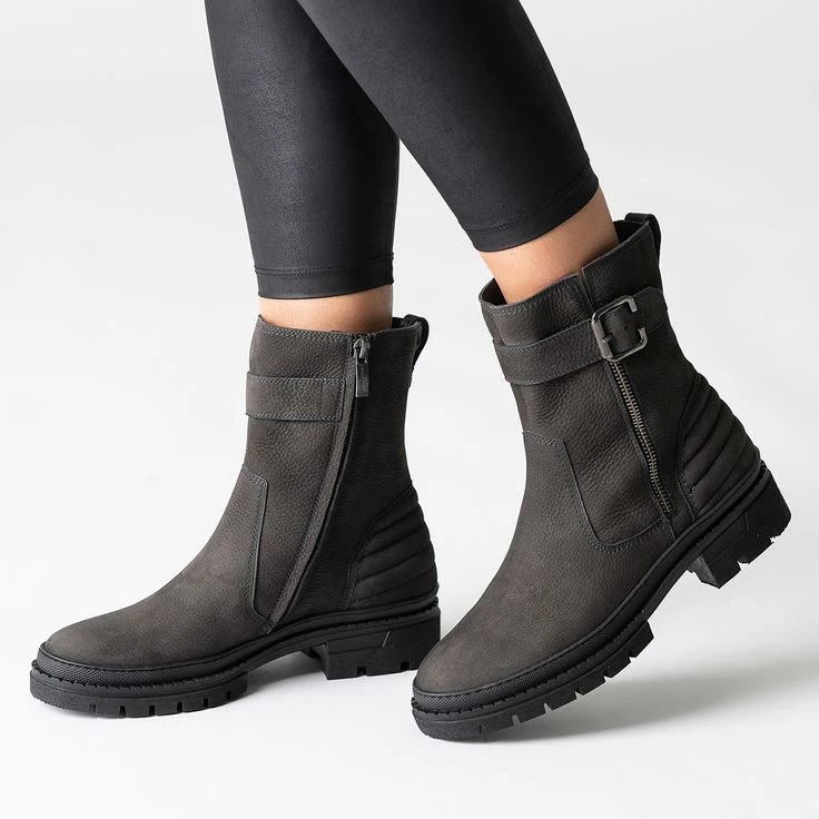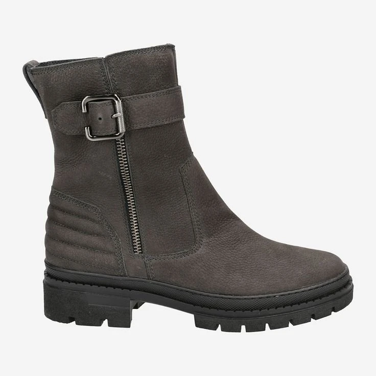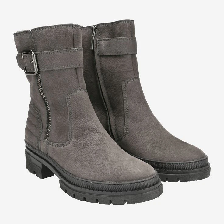 This gray ankle boot from Paul Green is ideal to stylishly set your fall / winter look in scene! The high-quality nubuck leather fits perfectly to your foot thanks to its natural grain. The side zipper allows for practical entry. Paul Green complements this model with a decorative zipper, a casual decorative buckle, as well as a high-quality quilted, plastic heel area. The rubber wetness protection runs along the entire last, and keeps splashing water away from puddles optimally!