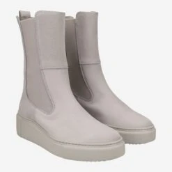 The high shaft of this light gray Chelsea boot shapes a narrow foot, and always fits perfectly due to the wide stretch inserts! The gray nubuck leather is of the highest quality, guaranteed by Paul Green in European production. The light platform of the sole is extra-light, and a fashion statement of the very first order! Through the leather lining you enjoy breathability, and a natural material that adapts to your foot individually.