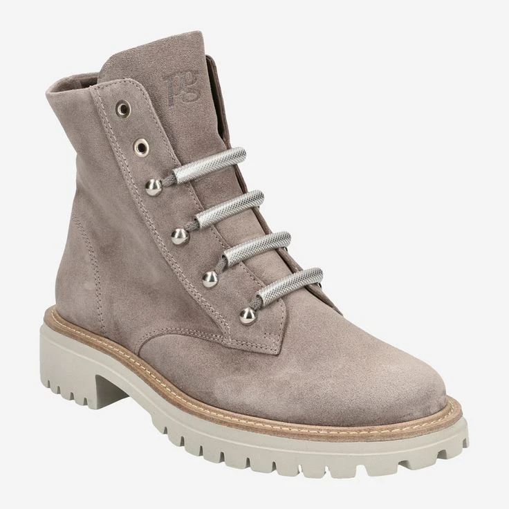 Paul Green picks up with this stylish boot the former look of the popular worker boot! Through the noble composition of gray suede, bright contrast stitching, and the innovative lacing, this model is a highlight of the new collection! The entry is made via the practical zipper, whereby the lacing serves as an impressive eye-catcher! Four metal sleeves complement the side decorative rivets, and create a futuristic, cool style! The upper eyelets remain open, and casually round off the embossed PG logo on the tongue! So fashion is really fun!