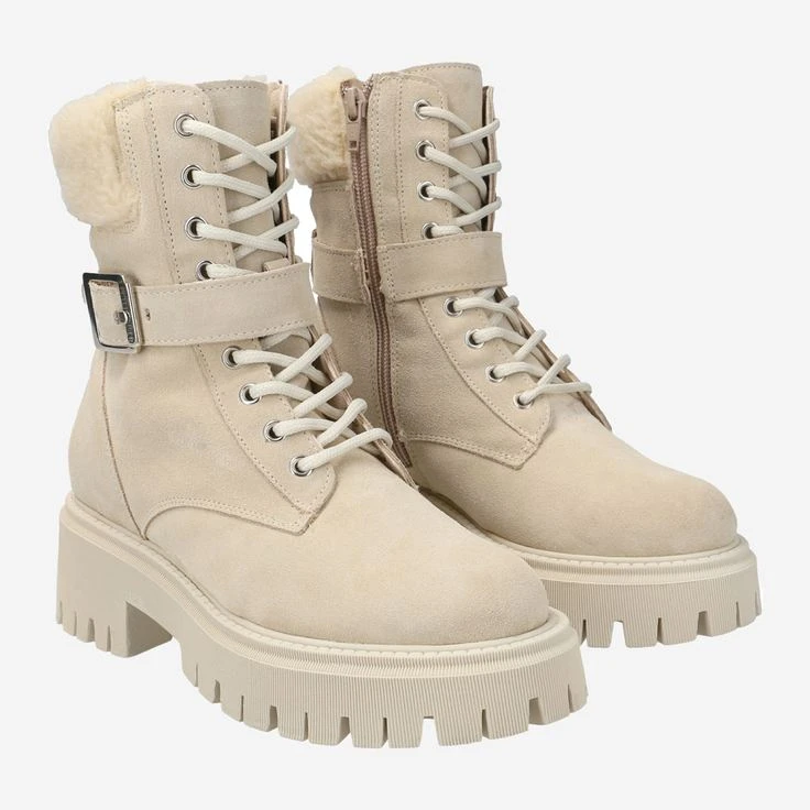 - Warm lining, zipper, decorative metal closure, logo embossing, decorative stitching, block heel, platform heel