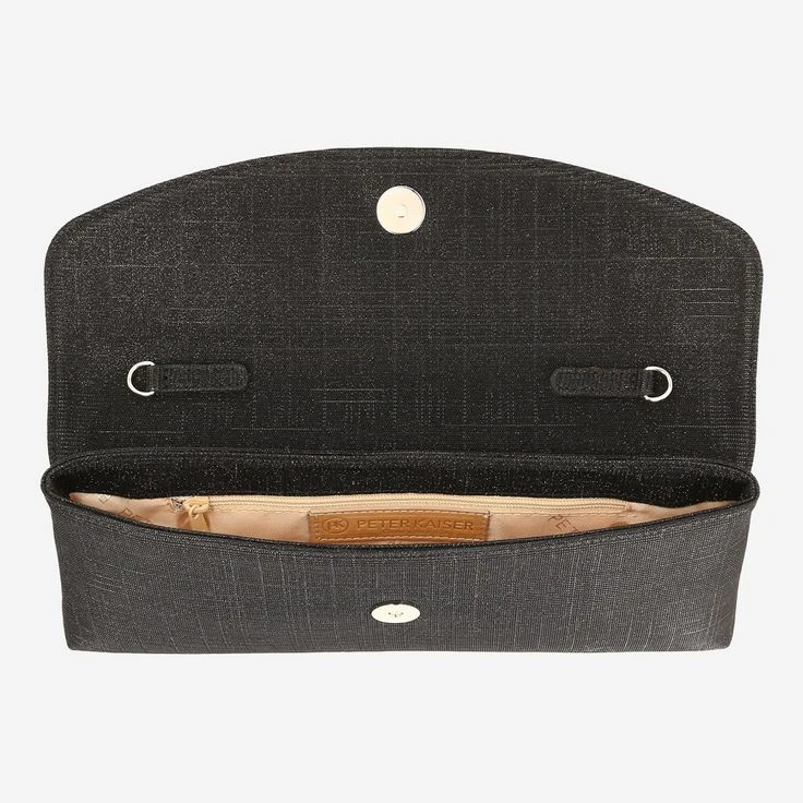 Pure glamour is the new women’s model from Peter Kaiser. The black textile is interwoven with shimmering threads and thus becomes a trendy accessory for a date in the evening or a party night with the best girlfriends. Simple and practical, the clutch can be closed with a magnetic closure. Have fun!