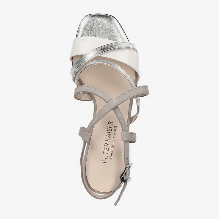 These charming Peter Kaiser sandals offer a stylish color mix of silver, gray and white and a modern, comfortable block heel. The super soft straps elegantly enclose the foot and the decorative clasp skillfully rounds off the design. Made of high-quality leather, the PAVA sandals impress with a soft feel and an anti-slip sole for a secure grip.