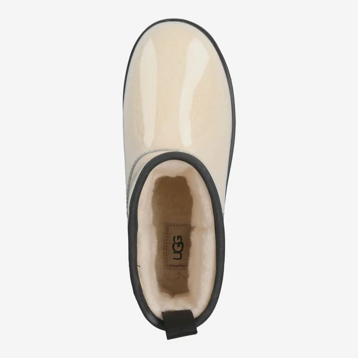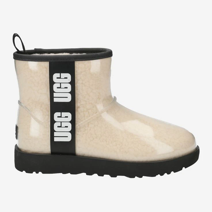 Something new, different and unusual for the fall / winter like? This stylish warm lining boot from UGG is a very special eye-catcher. The transparent rubber upper allows you to see the inside of the shoe : a single bed of clouds. The wool allows you to walk always fluffy and warm, whatever the outside temperature. This boot is therefore, thanks to the waterproof upper, weatherproof up to -20 ° C! The side black stripe with logo print, as well as the sole and upper edge give this model a fantastic modern look! Ready to walk on clouds? (psst : most cozy without socks).