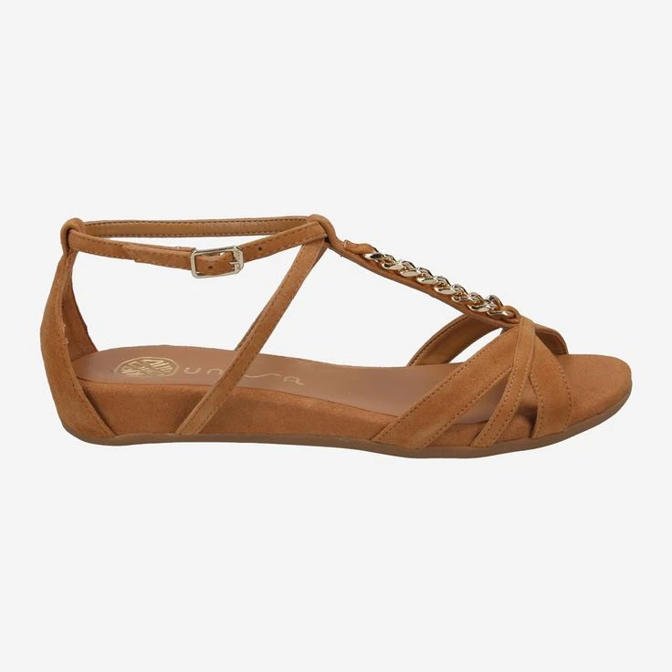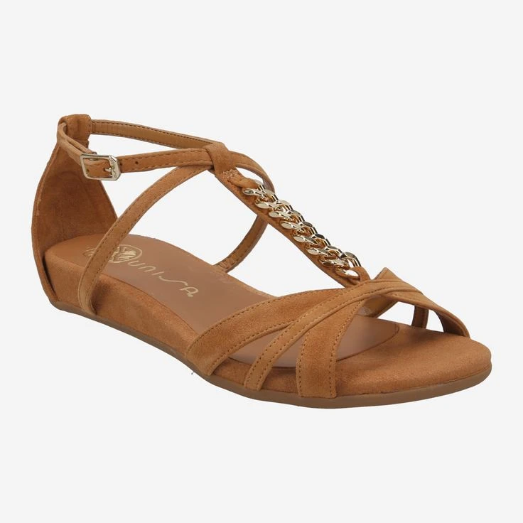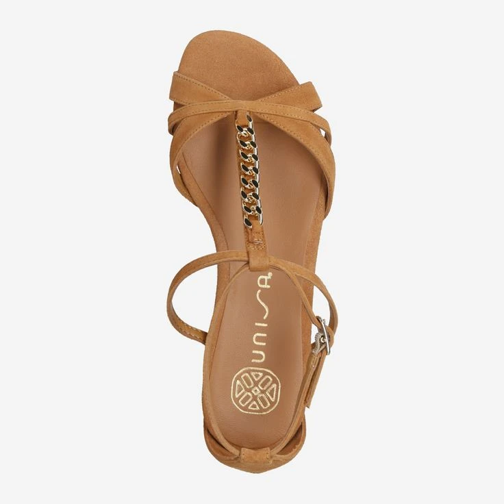 - Metal closure, wedge heel, logo embossing, chain-look jewelry application, breathable