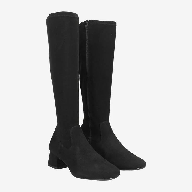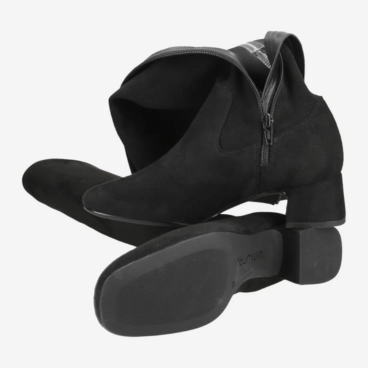 - Zipper closure, block heel, stretchy upper (completely flexible).